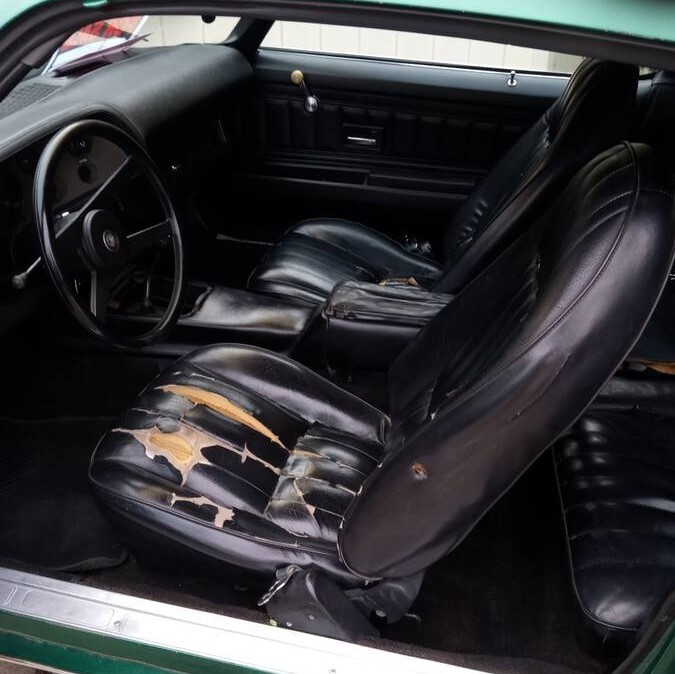 Surprised the seat vinyl is cracked, but the dash is not – may have been replaced?
