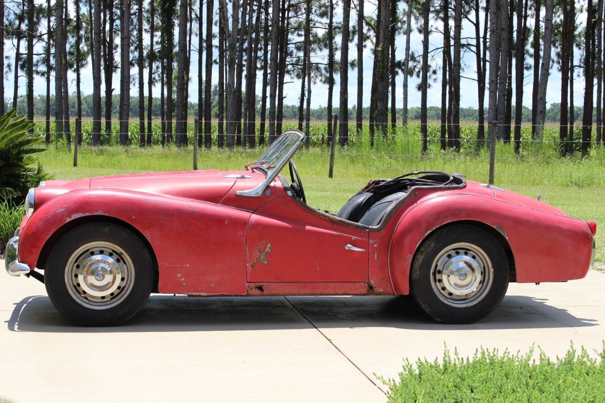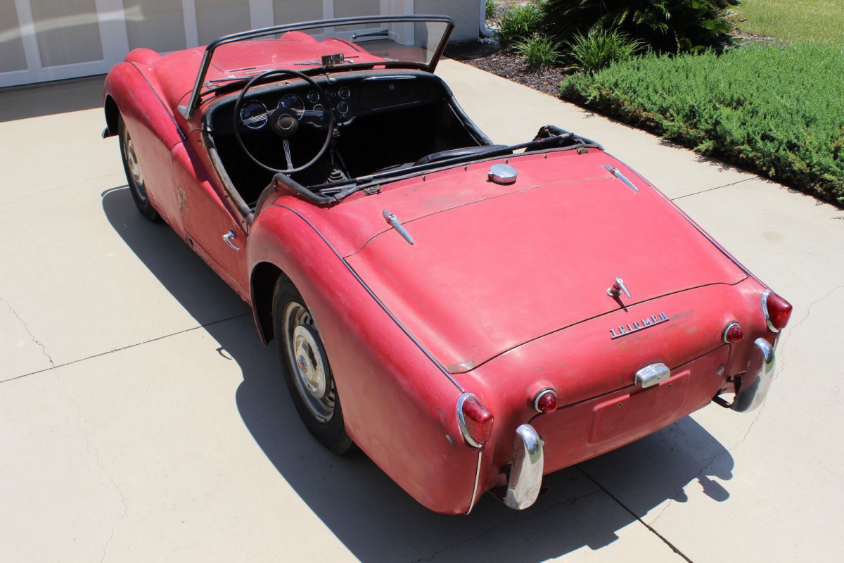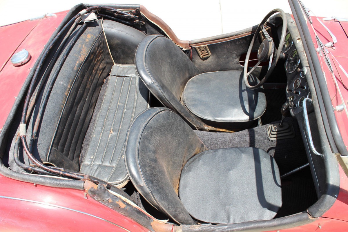 It’s Signal Red over a black leather interior, one that managed to hang onto its optional, cosmetically desirable but effectively useless back seat. It has parts. But, above all, it’s a TR3. A time traveling survivor, an ultra-classic pulse quickening head-turner with roots that date to the era of “I Like Ike” and Elvis.