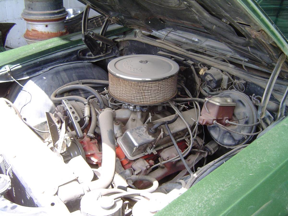 Bankruptcy? Like the car a lot despite not having a black interior, the 350 was available in the SS for ’72, right? Looks like an Edelbrock intake, no headers which was rare, nice big deep breathing open air cleaner, wonder about the cam, lifters, timing, compression ratio, or if it even runs at all with fresh plugs and gas. Looks like a fun cruiser.