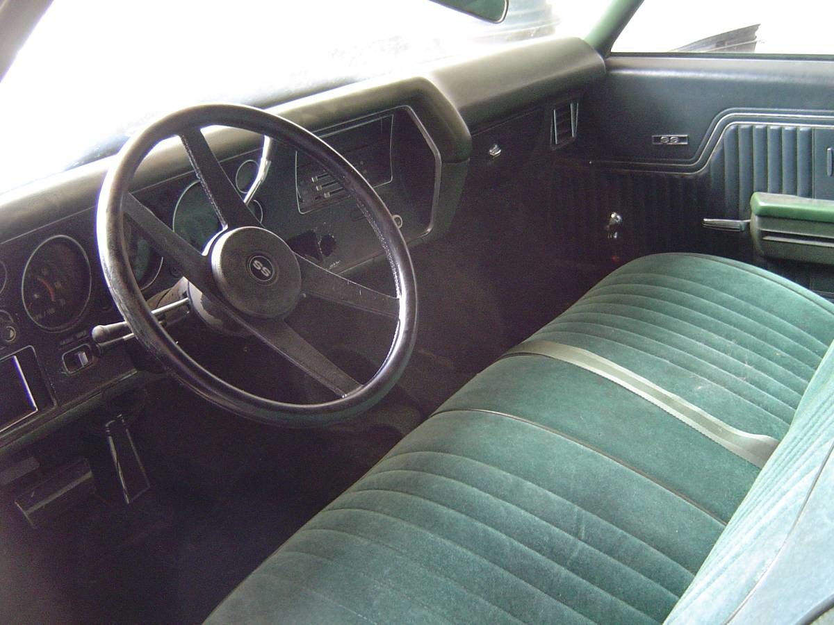 The photos that the seller supplies make it quite difficult to make a definitive assessment of the Chevelle’s condition, but overall, it does look pretty encouraging. He has been able to glean some information from the owner, and it appears that the green paint that the car wears is fairly new. Below the layer of dust, it looks like it has a very nice shine to it. There are no signs of any rust issues, and the seller makes no mention of any problems in the listing. The vast majority of the trim and chrome seem to be in good condition, although I did notice that the trim around the front wheel arch on the driver’s side has been damaged at some point. The Chevelle rolls on upgraded wheels, and while it is hard to be certain, it looks like these might be 8″ Rally wheels. What can be seen of them tends to indicate that they are in pretty good condition.