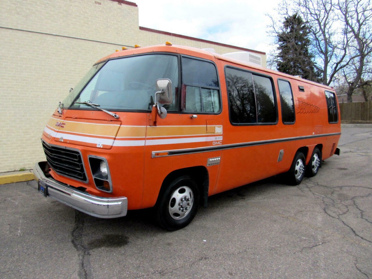 Awesome looking GMC Motorhome. I love the colour. Very nice. This is my idea of what a class A motorhome should be. It’s small enough that you could drive it anywhere without feeling intimidated. But it’s large enough that all but the tallest person could walk around in it upright. Two adults could live in it in comfort while travelling the country. I hope it goes to a good owner.
