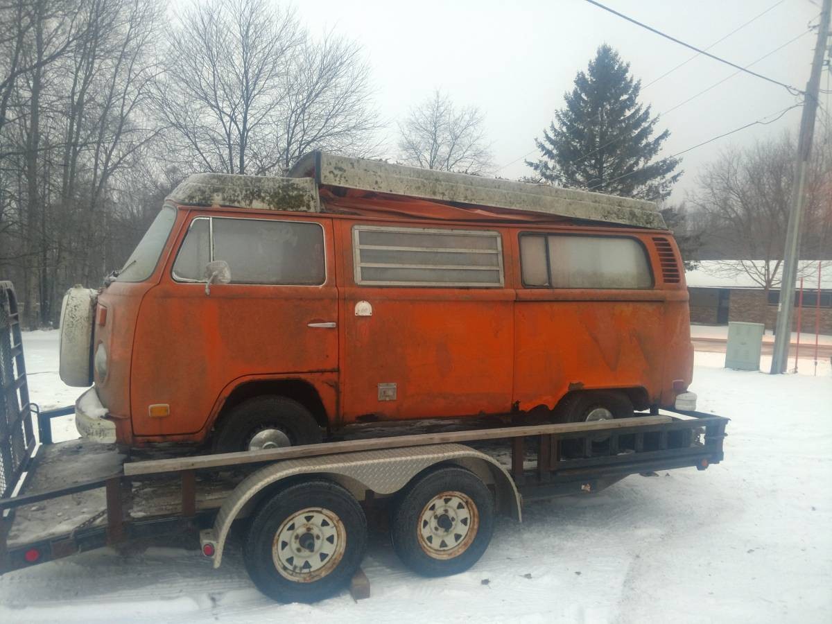 Yup. I once stripped a wrecked 66 Westphalia and installed it lock stock and barrel into my cherry ’67 21 window bus. I took the wrecked bus apart in my garage. The right top front had been crushed and it was not salvageable then. Here’s a pix of the stripped Westphalia on the way to the boneyard. As an aside I sold my 21 window rig for 6K in the mid eighties….how did I know that thirty years later it would be worth an easy 100 grand! Just nuts.