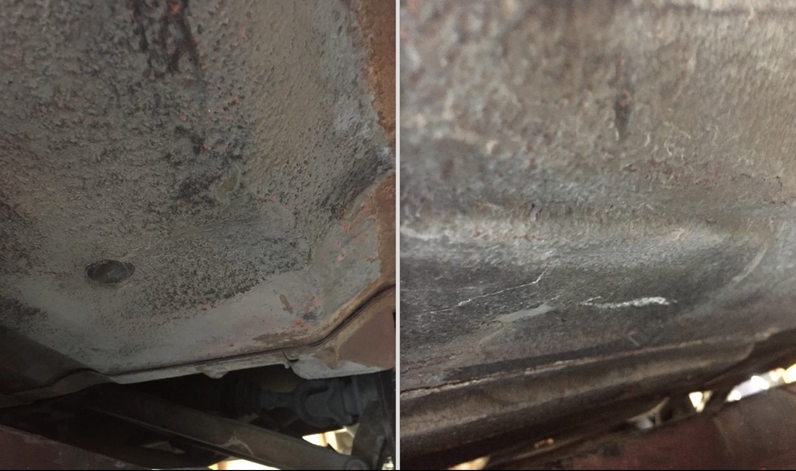 The pictures of the underside look very nice. There is just a bit of surface rust.