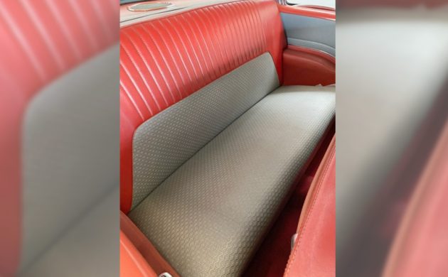 The seats look perfect, both front and rear, as you can see, and it sure looks like the next owner will be getting a nice car. The fabric pattern appears to be exactly like what you’d see in a 1955 Olds brochure, and I do see one small separation in the red vinyl (?) material in one of the seller’s interior photos. Otherwise, what a gorgeous time capsule. The trunk also looks outstanding. We don’t get to see any underside photos, but the seller has included a piece of gold: the original sales slip showing all of the features and options, along with colors and other great info!
