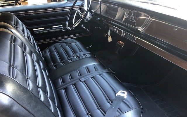 Also original is the black interior. The front bench seat looks to be in very good condition and the rear seat follows suit. Carpet, dash, and door panels all appear to be in very good condition too. Metal-trimmed woodgrain accents abound but aren’t too overwhelming. Some interior options include tilt steering column, Soft Ray tinted glass, original “Bow Tie” accessory floor mats, and AM-FM radio. The trunk is dressed in it’s original gray and black spatter finish with, of course, the original spare tire in place.