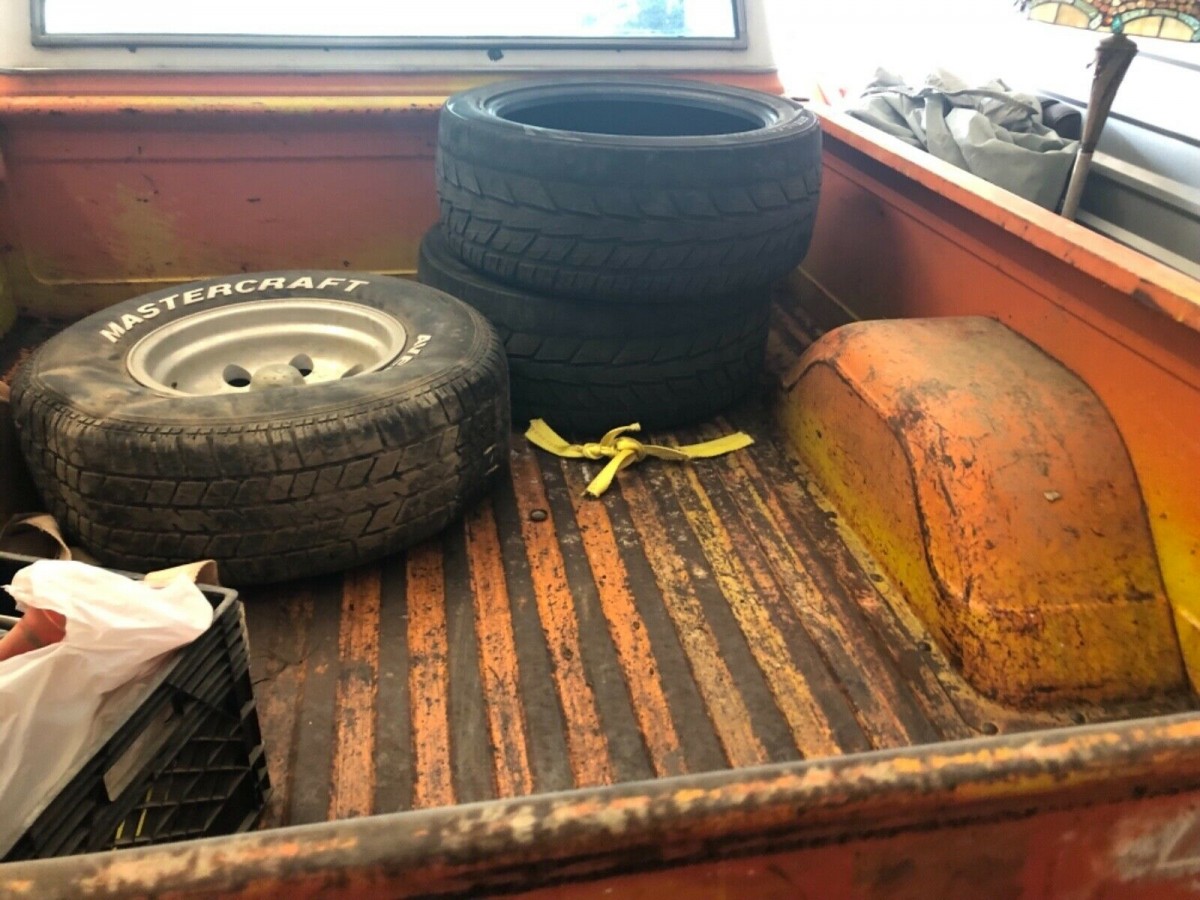 The bed of the truck has some surface rust, but looks to be complete. There is no word if the random oddities in the bed come with the truck. It has a low aggressive stance and at this price, would be a fantastic project.