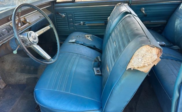 This Chevelle’s interior is surprising when we consider how baked the exterior is. I expected to find significant UV damage, but the condition is far better than many may expect. The front seatcover, carpet, and painted surfaces require attention, there is wheel wear, and the faux woodgrain shows its age. However, the dashpad hasn’t waved the white flag, and the remaining Blue vinyl trim should present acceptably with a deep clean. The first owner didn’t load it with factory options, although most potential buyers will welcome the AM radio.