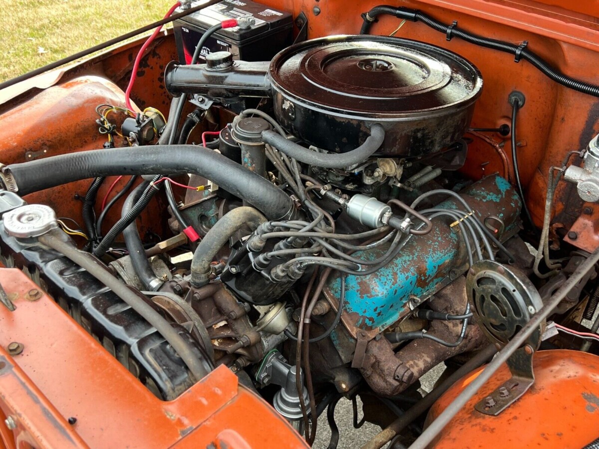 I agree that this one so far is much more reasonably priced than most I’ve seen. The rusted body mount appears to be the worst issue it has. I wouldn’t waste money refurbishing the existing seats, I’d swap them out for some high back buckets that are more comfortable and safer. As for the V-8 with a 3 speed, assuming it has the 3:73 gears which were standard it will certainly do more than 65 mph. My first vehicle was a twin to this one except for the color and a few minor features, mine had a functioning tailgate, a backseat, and parchment colored upholstery. I still have a few parts of mine left including the transfer case which is attached via an adapter to a T-10 4 spd out of a Ford as I eventually swapped a 302 into it.