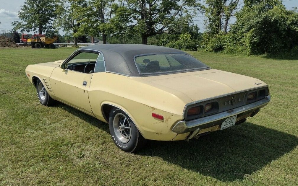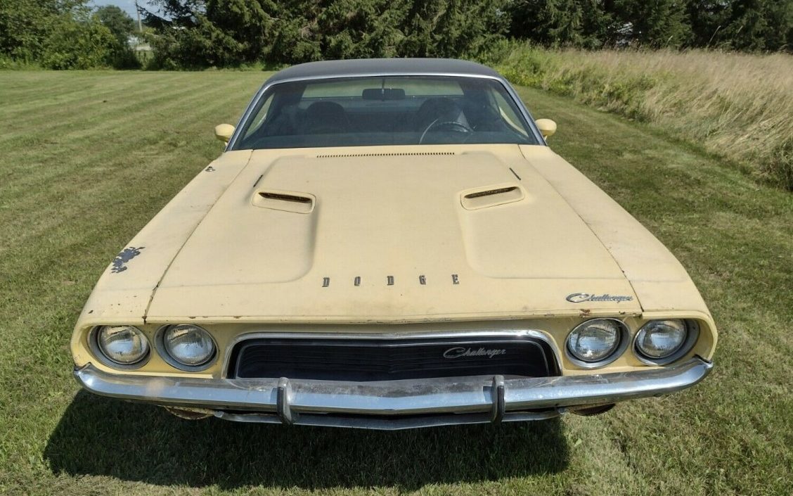 This Challenger has been repainted once, according to the seller, and what we see of the vinyl top looks good. The body shop will stay busy correcting all the issues with rust that have built up. Several undercarriage photos are provided and there are a few holes here and there, along with the trunk pan and some exterior sheet metal. We’re told the floors, however, are in good shape. The interior looks as though it gets at least a C+ with both buckets’ seats needing new covers it you can match the material.