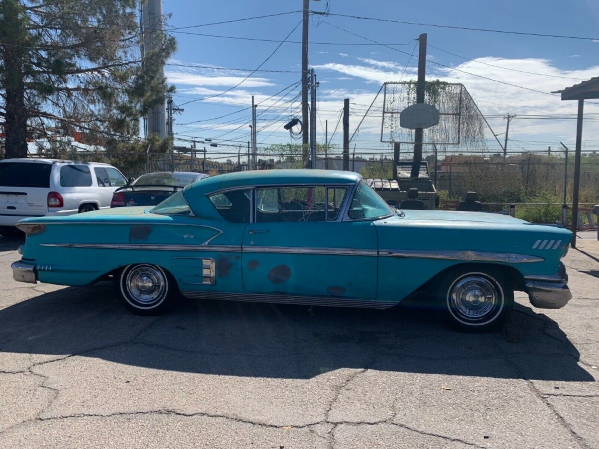 58 Chevrolet’s had a turboglide automatic transmission avaliable also.The radiator shroud is a 283 not a 348 in this car. Either the motor is wrong or the shroud. 58 Chevy’s are such beautiful car’s.
