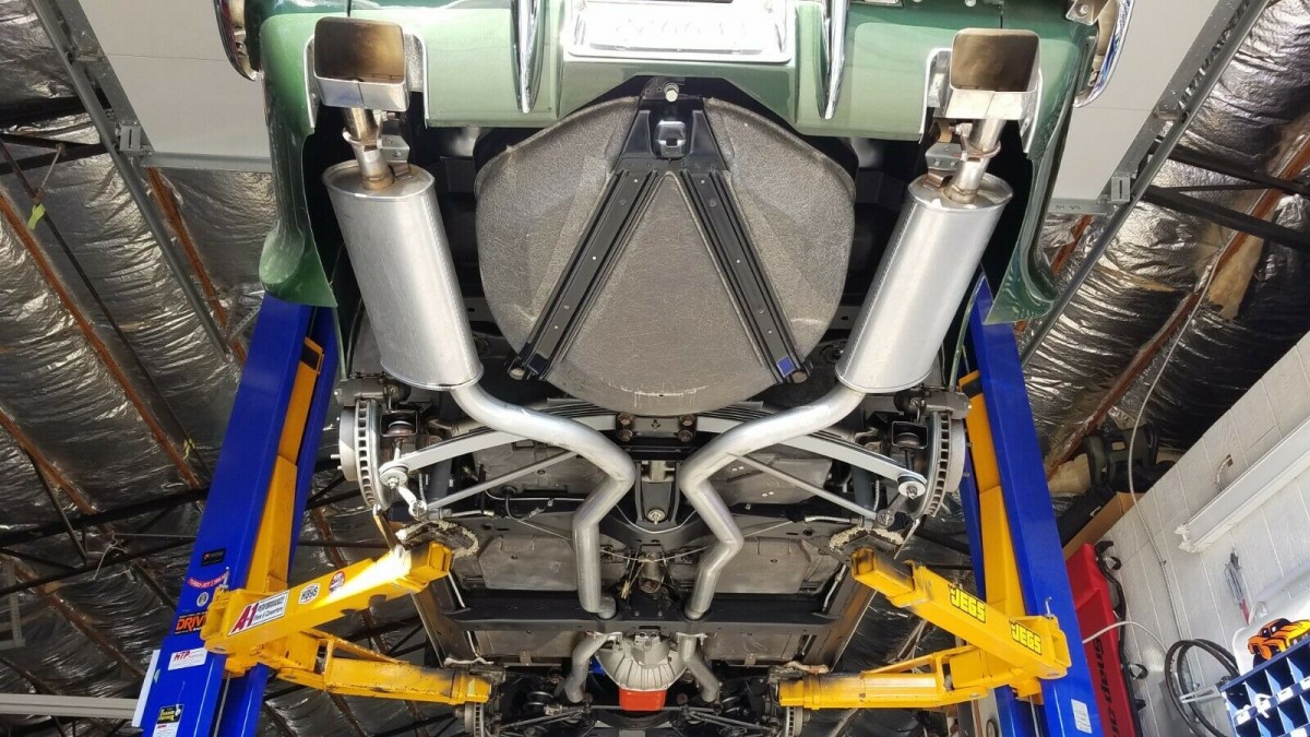 There’s a lot to like about this Corvette and not a lot that rates serious criticism. The original Donnybrooke Green paint shines magnificently, and the depth of color is impressive for a vehicle of this age. Flaws are few and far between, with no significant chips or marks. Similarly, the fiberglass is in excellent order. There are no signs of stress cracks or issues around the bonding strips and no evidence that this vehicle has suffered neglect or abuse. Refreshingly, the often troublesome headlamps and wipers work as well today as they did when the Corvette was shiny and new. The trim and chrome appear to be close to perfect, which is also true of the glass. On the surface, this chrome bumper Corvette makes all of the right impressions.