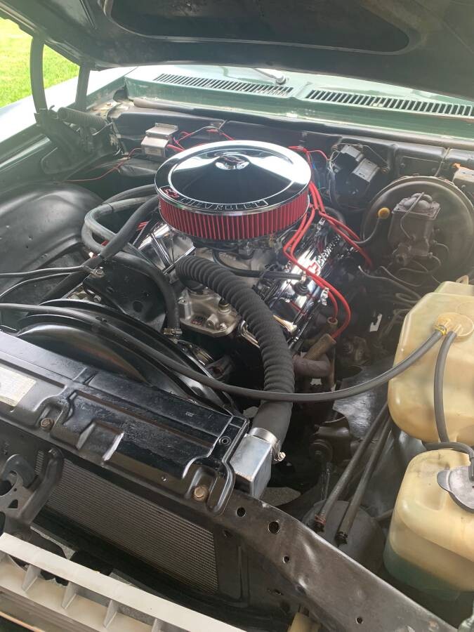 “With 185hp at the driver’s disposal, this Chevy should cover the ¼ mile in 16.5 seconds”. Hmmmm.. aluminum intake, big air cleaner hiding a Holley or Edelbrock carb, tube headers at least. Then the chrome timing cover says he’s been in there so a cam swap would have been tempting. :-) Terry J
