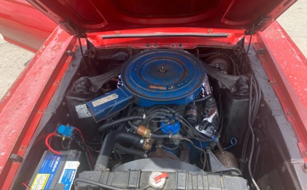 The Cougar’s interior is a bit of a mixed bag, but it can be considered serviceable in the short term. The Dark Red leather on the seats looks nice and should respond positively to the application of a high-quality conditioner. The faux woodgrain hasn’t deteriorated markedly, and there are no headliner issues. However, the dashpad is warped, and it appears some plastic components exhibit deterioration. The compressor and some other engine bay components for the factory air conditioning are AWOL, and the tilt-away steering was removed at some point. It also appears that the original AM/FM stereo radio has gone, but I had no problem locating appropriate replacements on a couple of online auction sites.