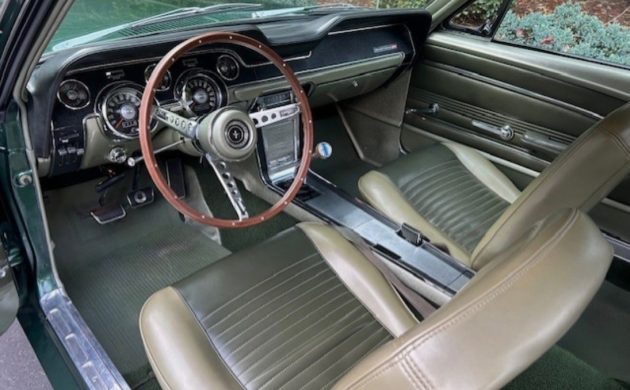 This Mustang’s originality is said to extend to its interior. This aspect of almost any classic can look tired with age, with worn upholstery and UV damage the major indicators. However, this GT’s Ivy Gold vinyl is excellent, although the carpet isn’t visible beneath the mats. The headliner is spotless, and there are no issues with the dash or pad. The first owner equipped the interior with the optional center console, GT gauge group with a factory tachometer, an AM radio, and an electric clock. The overall impression is that this interior will receive many positive comments when viewers learn it is unrestored.