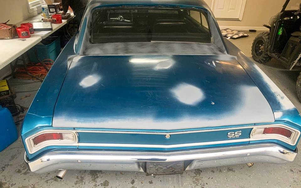 Either way though, this car has been repainted at least once, and the CHEVELLE emblem is missing from the rear panel, so this car would not be any indicator of originality anyway.