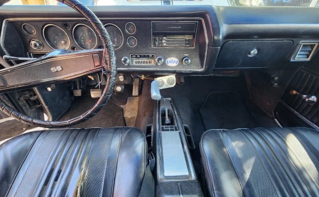 Other than buckets and a console, the interior is fairly basic here. However, when you’ve got that beautiful T-handled shifter sticking up through the tunnel, what more do you really need? The headliner shows a few holes, plus the driver’s seat could use some new upholstery, but after making those repairs then replacing the cracked steering wheel, the inside appearance might be satisfactory. It’d be great if the original 454 LS6 were present, but with how this one came performance-optioned, it’s still a very desirable example, and I’m curious if the seller will end up getting his seventy grand here. What are your thoughts on this 1970 Chevrolet Chevelle Super Sport?