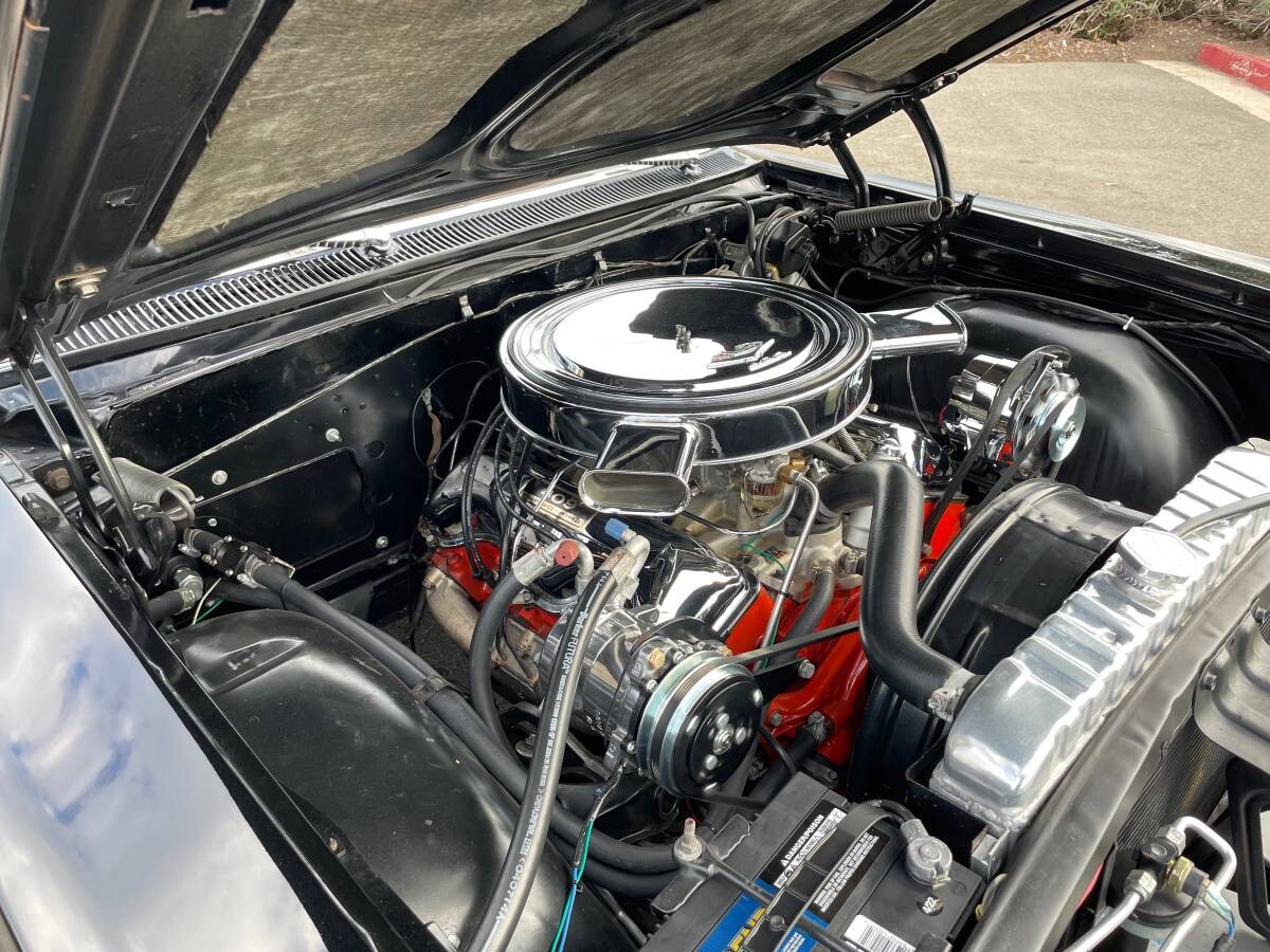 While I’ll admit, I don’t like black cars,but this car has enough chrome and such to accent it. You know, I watch the tv auctions, and every car simply has to be over the top, like here, when, it just wasn’t so. We didn’t have chrome alternators OR vintage a/c. Back then, most beat the snot out of these cars, it was the hottest stick Chevy had, and was getting old. Even with the 2, 4s, it lagged behind Ford and Chrysler. It should be noted, I never saw a “409” engine callout badge, and we made it our business, as kids, to check for that. There were, I read, in ’64 like 70,000, 6 cylinder Impalas, and like 650,000 small block Impalas, so 409s were rare, dual quad, even more so. I read, it was almost a $500 option then, a hefty price. Also, some say it was “over rated”, and claimed 425hp to compete with Ford and the hemi,( that were actually almost 500 hp) but was more like just over 400. 1965 changed all that with the 396 and 427 a year later, aside from a few ’65s, this was the end of the line for, I feel, one of the most famous motors of all time.