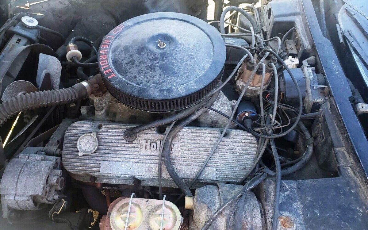 The Holley valve covers suggest an injection of parts in the 1980s. This may be an excellent snag for someone with a set of Tri-Power induction parts in their garage. The L68 setup added 10 HP on paper, 400 vs. the single four-barrel L36’s 390. The “L68” is considered an engine package on top of the L36 motor, though you’ll see it listed as a unique engine in some places. The “IO” stamping on the block tells the difference. Thanks to WillCoxCorvette and CorvetteForum for some details.