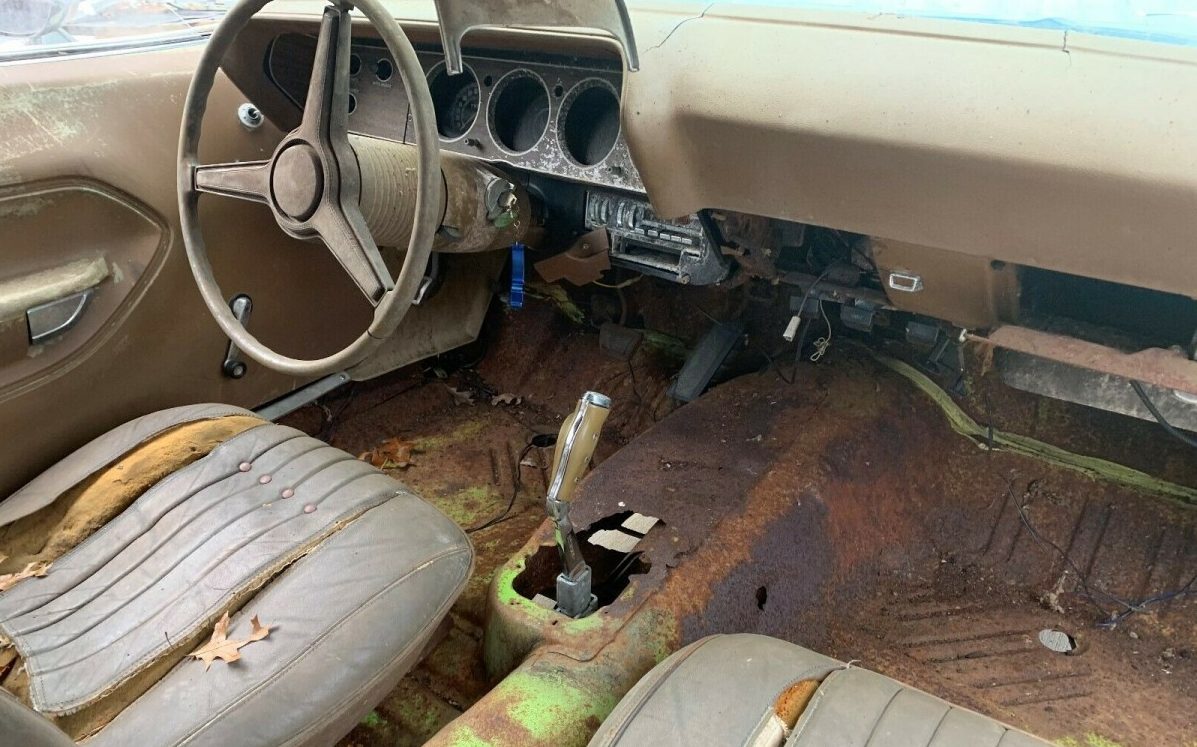 Looks right out of the 70s with those speed shop stickers inside the trunk lid. This is how I remember these cars in high school inn the 70s. Great description by the seller. I am an hour away from this car but can’t see it Christmas Day. Got to go to in-laws. Would rather jump into a vat of acid. Needs total resto. You can find an intake. Carbs being reproduced by Holley. Good pics of the floor. Not sure it’s worth close to 40l large in this state. Sure there are little parts missing that add up to $$$$$$