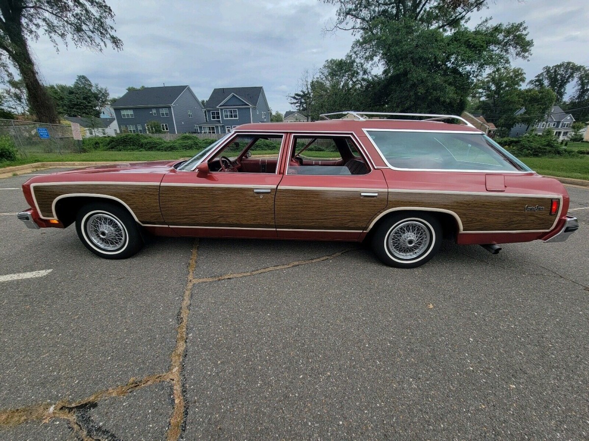 I love these station wagons from GM, 1971 to 1976 with the “clamshell tailgate.” I had a 1973 Caprice estate wagon in 1975. Mine was blue with black vinyl interior. Some friends and I would go to the naval base in Orlando, Florida, pull over, drop the tailgate a pile a bunch of sailors in and give them rides to their destination. MPs pulled me over and asked how many people I had in the car. I said 9. It’s a 9 passenger wagon. Actually had 16 people crammed into that car. Those were fun days.