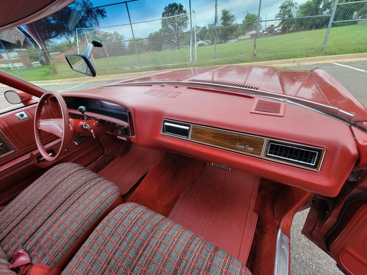 At more than 19-feet in overall length, this Caprice could never be a wagon that people would describe as small. It is a big vehicle designed to carry big loads, and this is graphically demonstrated by how much of its total length is given over cargo space. However, Chevrolet’s decision to bless the wagon with vast expanses of glass helps prevent it from looking heavy and cumbersome. It is a striking vehicle, and it presents well as an original survivor. The owner doesn’t mention any previous restoration work, so I have taken it as read that the Estate remains as it was the day it rolled off the showroom floor. It is a forty-five-year-old classic, so there’s no great surprise that it isn’t perfect. The red paint has a few flaws and marks, but nothing that would demand immediate attention. The same is true of the matching vinyl top, although I think that some careful attention with the right products would return the vinyl to as-new condition. The faux-woodgrain also sports a few imperfections, but these aren’t glaring. Unless the buyer is a perfectionist, I would advise them to leave it untouched. This type of vinyl will fade as the years pass, and finding replacement pieces that match the existing finish could be a battle. It would probably entail replacing the lot, which is why I think that leaving that can of worms unopened could be a wise move. Rust seems to be confined to a small area in the lower rear quarter on the driver’s side, but the next owner should be able to address this with a simple patch. The trim and chrome are in excellent order, as is the tinted glass. One of the coolest features of this wagon is the power clamshell tailgate. I never get tired of seeing those things in action, and I have included a video of this one at the bottom of this article to demonstrate how nicely it works.