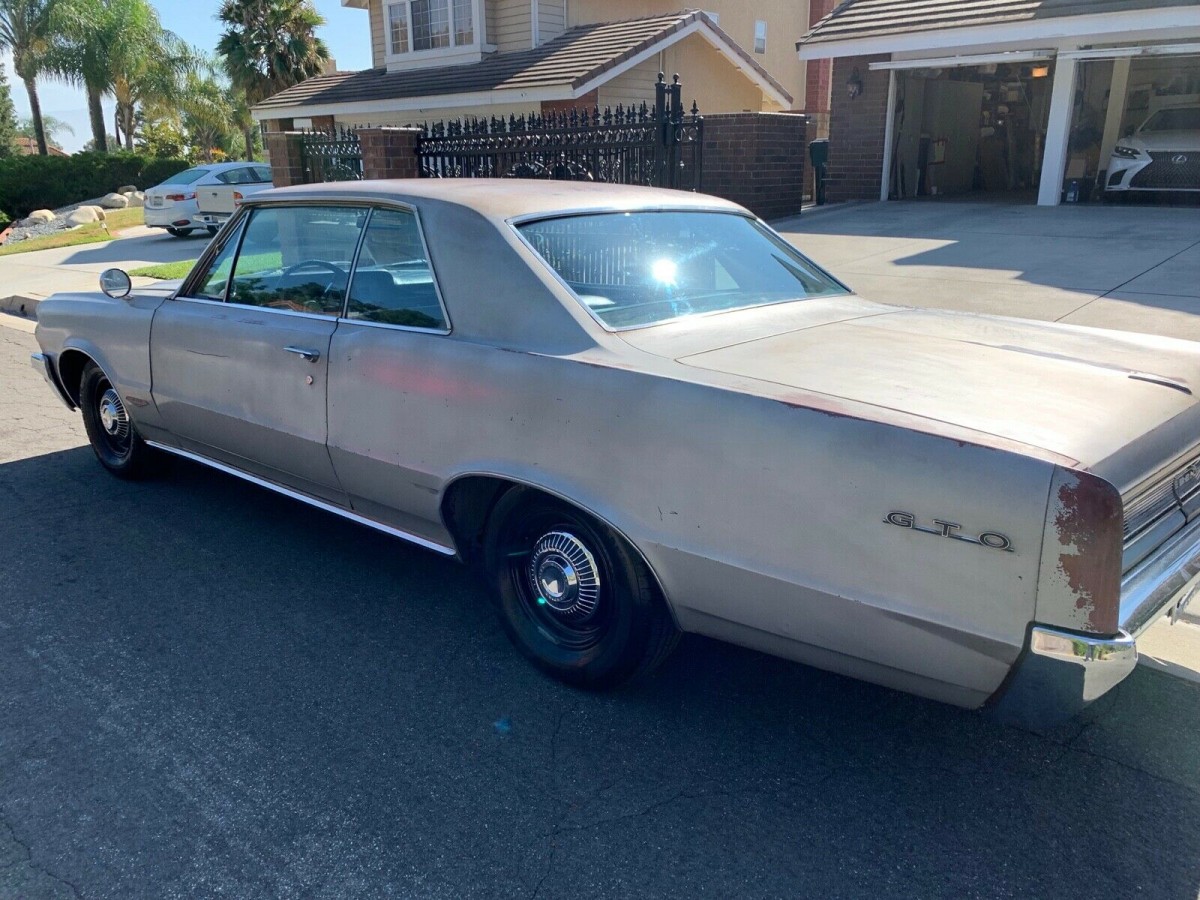 I think is opening bid is way too steep, but the overall condition (minus the quarter) is remarkable. Apparently a CA car since new, look at the fender bottoms, the bottom lip of the trunk, both very common rust out areas. correct 64 only console, looks like a dealer add-on 4 way flasher, apparently untouched under the hood. The seller does say it runs and drives good, but his buy-it-now price is approaching some really nicely restored cars. 64’s aren’t as sough after as the 65 and up, but it was the first GTO. If that rear quarter could be repaired and given the patina treatment to match the rest of the car, I’d drive it as-is. Originals always draw more attention than restored at shows, and generate a ton of questions. I have a 65 4 speed Tri Power convert, interior and mechanical restored, but it still has the original super gnarly paint. It still has the original top, a few tears, back window gone, it’s a fair weather car, but people tend to gravitate to it more than the restored cars.