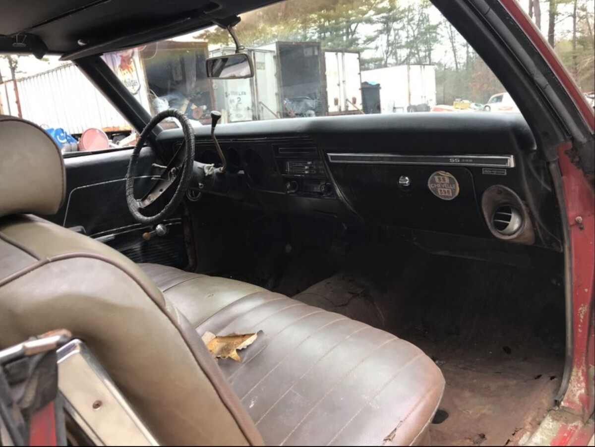 Lifting the hood reveals what separates an SS of this caliber from mere mortals. Its engine bay houses a numbers-matching 396ci V8 that sends 325hp to a 12-bolt rear end via a three-speed TH400 automatic transmission. The original owner followed the sensible path of ordering this classic with power assistance for the steering and front disc brakes. For high-performance enthusiasts, this combination should deliver a ΒΌ-mile ET of 15.1 seconds. The seller indicates that this car is completely original, apart from the carburetor. It retains its factory air cleaner, and even the exhaust is original. After sitting for three decades, it is expected the SS isn’t roadworthy. However, they include an embedded video showing the big-block running in their listing. It sounds as sweet as a nut, and the oil pressure is as healthy as you could hope to find.