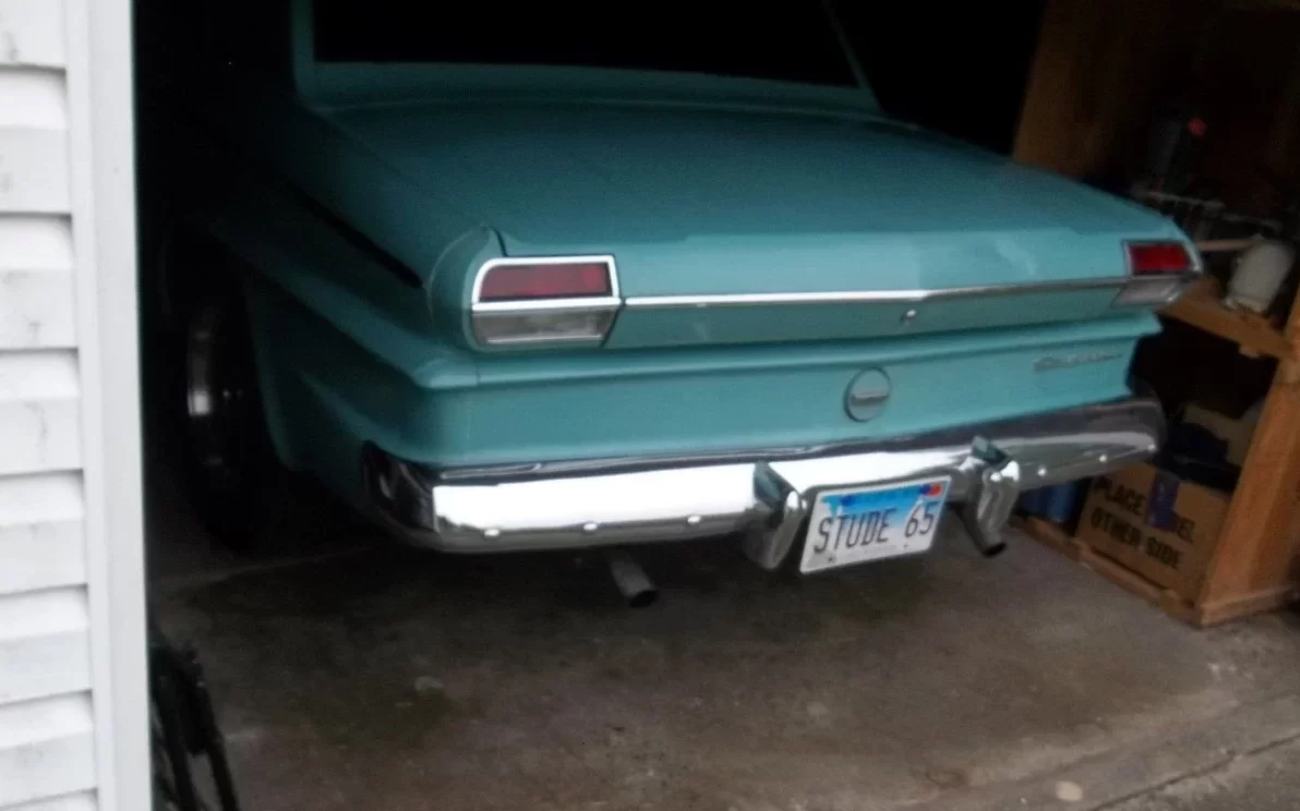 To those assuming that it’s a Powerglide because of the PNDLR shift indicator, that’s the way that all automatic Studes were (I have no idea how they got around the 1965 model year FMVSS rule requiring all automatics to have reverse between park and neutral — perhaps the rule was deferred for a year or two for “imports”). The B-W automatic was a three speed, but it was never possible to manually select second gear in a Studebaker. Six cylinder models used all three speeds, passing through second gear on the way to high. V8 models started out in second gear (often leading people that weren’t familiar with it to believe that it was only a two-speed), with first only being accessible by manually selecting “L”.