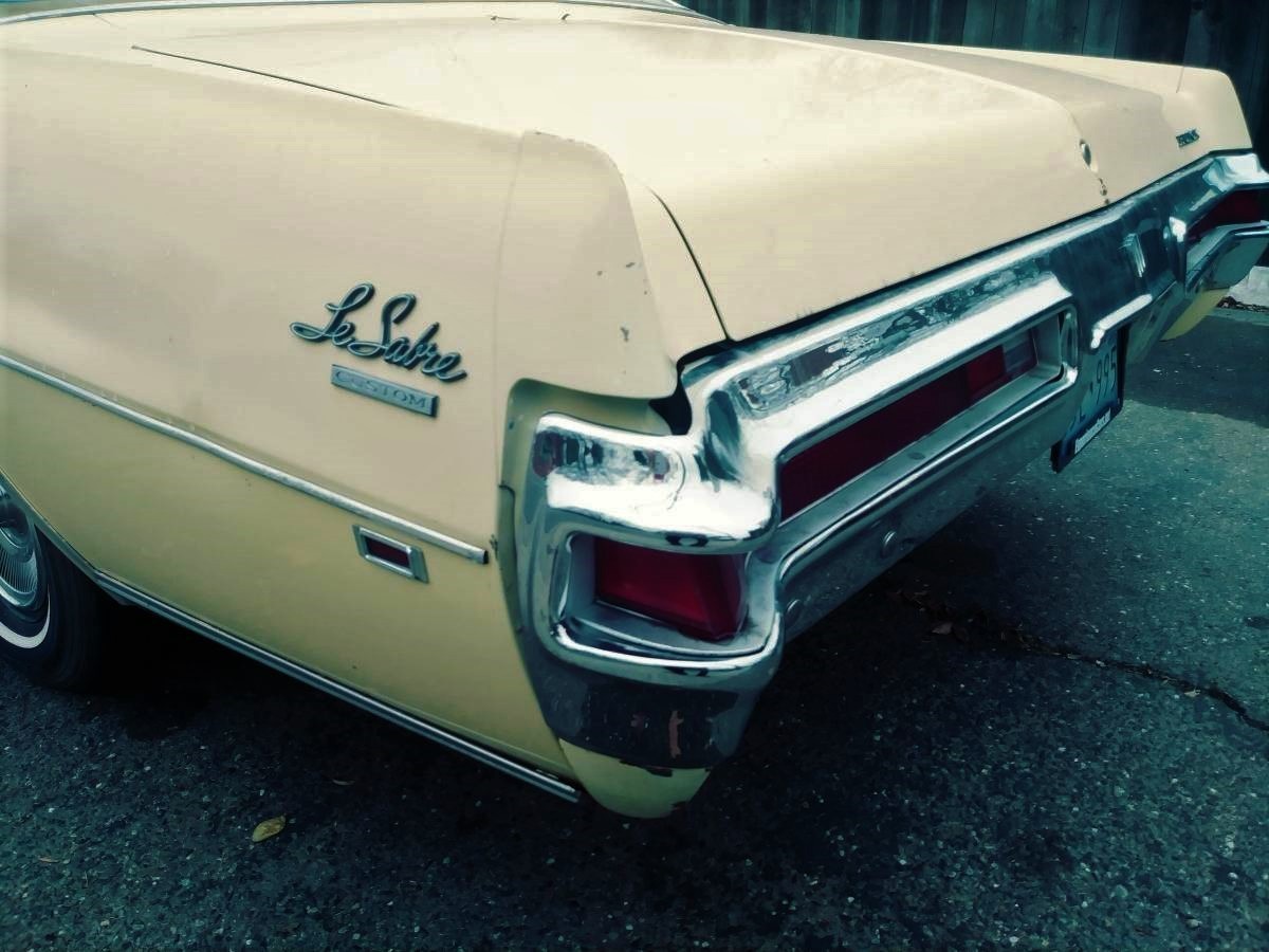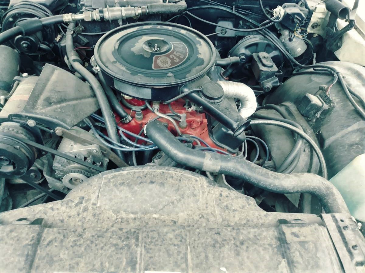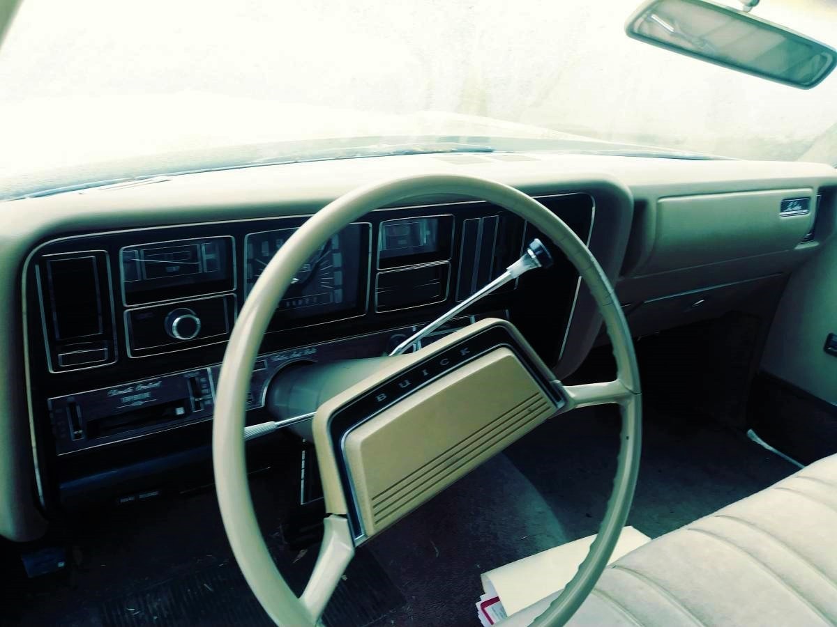 The interior picture does not show us the condition of the seats. I think these seats are probably Kenora cloth and vinyl but its possible they are all vinyl. The dash is in good condition, however. We can tell from the pictures that the Lesabre Custom has power windows and driver’s side remote control mirror. The seller also tells us that it has working air conditioning.