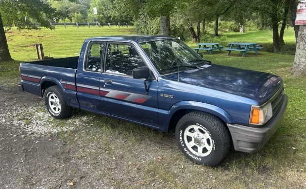 There was a time when buying a pickup that was loaded with style and considered quite “choice” for the era didn’t require having four wheel drive. We often think that the most desirable pickup trucks must have the raised stance that comes with a 4×4 configuration, but in the 80s and early 90s, a low-riding pickup was the bee’s knees. I don’t believe Mazda was trying to appeal to the lowrider crowd with the B-Series pickup, but it certainly didn’t hurt that a truck like this 1989 B2200 here on eBay looked as good as it did sitting on white-letter radials with wagon wheels and a slick decal kit.