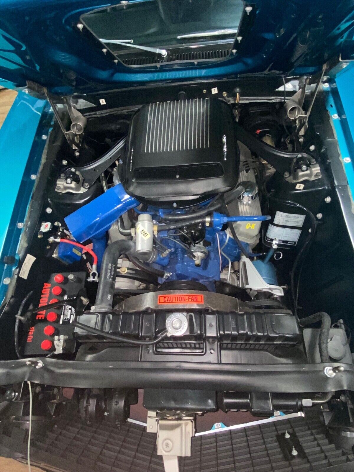 If we turn our attention to this Mustang’s interior, there is nothing that should disappoint a meticulous new owner. The seats wear the correct Black Clarion knit vinyl, with all upholstered surfaces appearing perfect. The same is true of the dash and faux woodgrain trim, with no evidence of UV damage or other issues. There are no aftermarket additions, with this classic retaining its correct gauge cluster, factory tachometer, rim-blow wheel, and original AM radio.