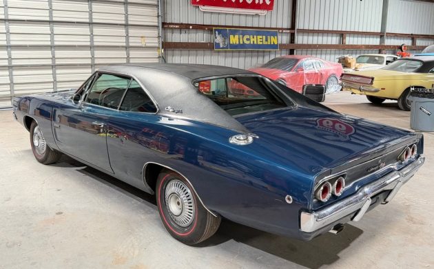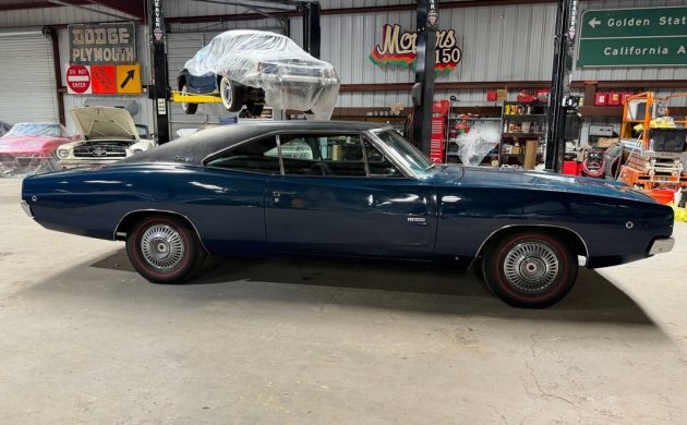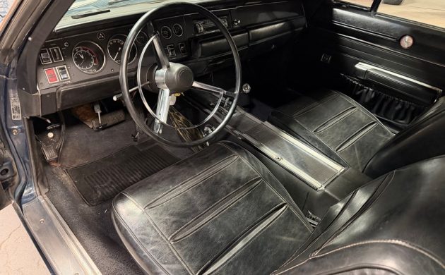 This Charger rolled off the line in 1968, produced as an export vehicle destined for Venezuela. As such, its glovebox houses the appropriate Owner’s Manual and other documentation, including the original Broadcast Sheet. The first owner ordered it in Dark Blue Metallic with a Black vinyl top. The seller states that the paint and vinyl are original, and the car has never received a restoration. As such, it carries a wide selection of paint imperfections and the occasional small ding. I’ve scrutinized the seller’s image gallery, and I believe there might be a more significant dent in the driver’s side rear quarter panel, between the door and the wheel arch. Otherwise, the photos confirm that this beauty is rust-free. The vinyl looks quite nice, and the glass is clear. The trim looks comfortably acceptable for a survivor-grade classic of this vintage, and the car features the iconic covered headlamps.