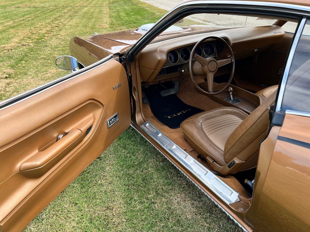 The seller has been this ‘Cuda’s custodian since 2008, and it has spent those years living in a climate-controlled garage. They state it is 1-of-4 ordered in Burnt Tan Metallic and that most of its paint is original. The exceptions are the front fenders and hood, which received a repaint in 2015 as part of a general refresh. It still presents well for its age, with no significant flaws or defects. The panels are laser straight, with the gaps as tight and consistent as you could hope to find on any Plymouth from this era. The underside shots confirm the car is rust-free, with many mechanical components retaining their factory paint markings. The distinctive stripes are crisp, the trim is immaculate, and the glass is flawless. Rounding out the exterior is a set of factory Rallye wheels that help add to the car’s menacing appearance.