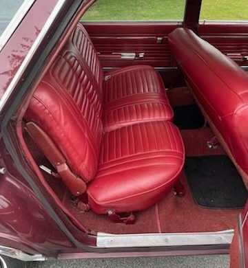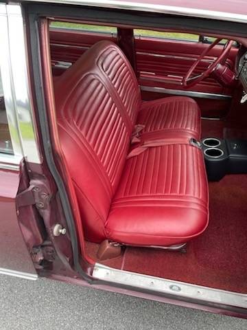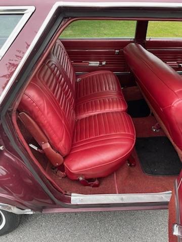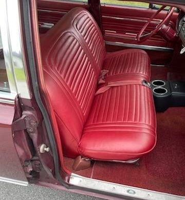I’m not sure if the seller used to be in advertising, but one industry trick to making a car look more appealing in photos and TV commercials is to place it on a wet, reflective street surface. It works here, because the Vista-Cruiser looks terrific. The Code N Burgundy Mist Poly paint is shiny, the chrome, trim, glass, and faux wire wheel covers look very good, and there’s no sign of the tin worm. I wasn’t aware of this, but the side profile photo shows that GM stretched its intermediate A-body chassis from 115 to 120 inches and the rear doors were lengthened four inches. This not only made for a more spacious cabin, but allowed for an optional front-facing third row seat, which was entered through the extended rear door with the split second seat moved forward.