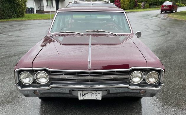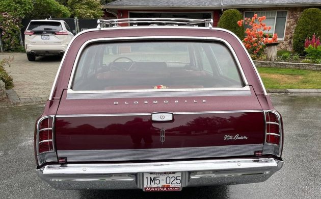 I wish there were more photos of the Vista-Cruiser’s interior, but the two pics provided show seats, door panels, and carpet that are very well preserved. The seller is brief with the particulars, but the wagon comes with power windows, power tailgate window, tilt steering wheel, and a Wonderbar Radio which is currently disconnected. Strangely, there are no photos provided of the wagon’s engine which is listed as a 330-cubic-inch Olds Rocket V8 with 35,000 miles. Nothing is said if those are the original miles or if it’s gone around the odometer orbit one time. The seller also shares that the Vista-Cruiser has a new T350 transmission and a new master cylinder. Even though it’s been an Arizona car, it is currently residing north of the border in Vancouver, British Columbia and is listed for sale here on craigslist for $29,000. A big shout out to Scott for spotting this great-looking old Olds long roof and sending it our way!