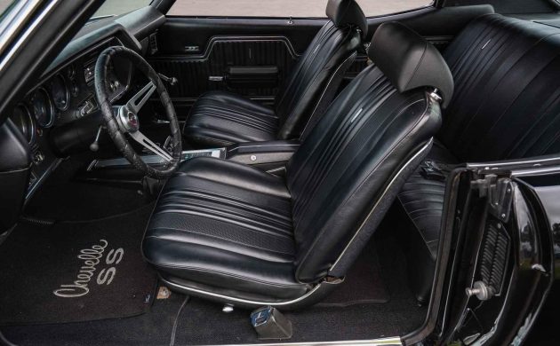 The positive vibes generated by this SS continue when we focus on its interior. Trimmed in Black vinyl, it features bucket seats, a console, a sports gauge cluster with a factory tachometer, and a pushbutton radio. Its appearance is as impressive as the exterior, with no cosmetic issues or shortcomings. The vinyl is excellent, there is no carpet wear, and the only visible aftermarket addition is the wheel wrap. My only criticism is purely personal, and that is the fact that this classic doesn’t feature air conditioning. The Tuxedo Black paint and matching interior trim could make life uncomfortable in hot climates. However, I’m sure that if push came to shove, I could live with it! Otherwise, this interior will generate plenty of positive comments thanks to its presentation.