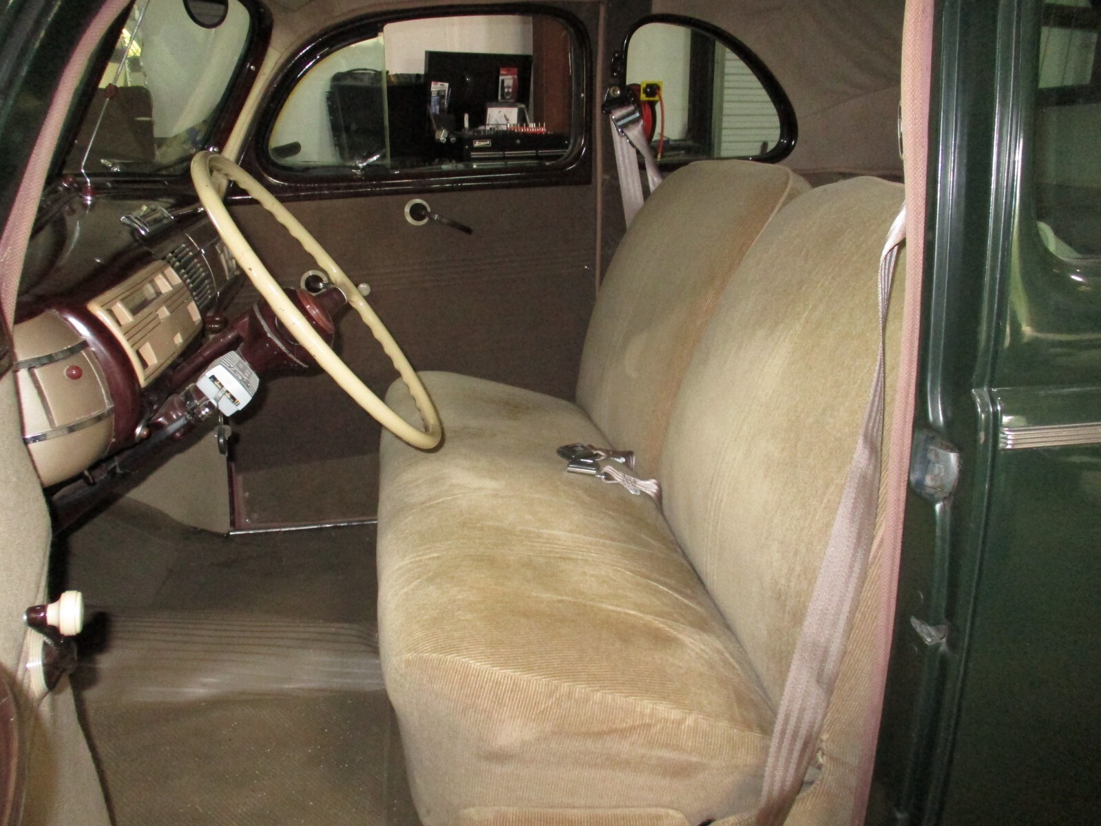 I bought my coupe a year ago and it could almost be a twin to this one. I was told the color is Acadia Green. Mine has a 1953 Mercury flathead and a Columbia two speed differential, and a LeBaron Bonney leather interior. It’s also been nut and bolt restored.
