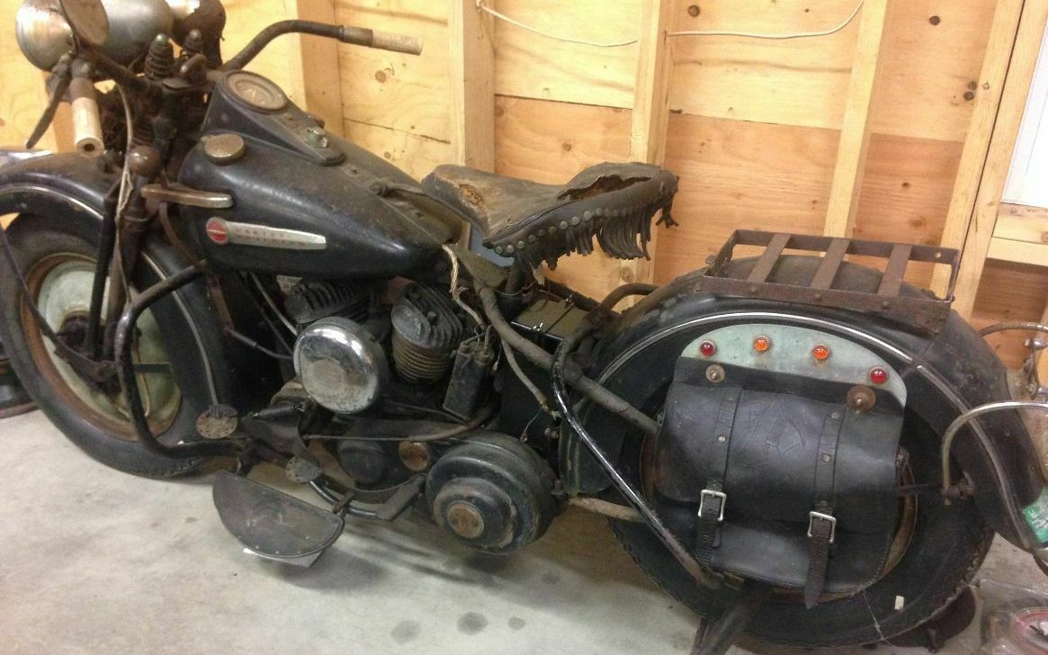 Long before the billet aluminum craze, Harley-Davidson owners were finding ways to customize their bikes. You can see some subtle modifications on this 1948 Harley like the gems that follow the curve of the rear fender. This bike is said to be an original-paint survivor that was parked in 1968! It can be found here on eBay with a current bid of over $15,000. Located in Feeding Hills, Massachusetts, it was apparently a one-owner bike until a couple of years ago. If you’ve been looking for an original Harley that you can do a mechanical restoration on but leave the outside original, this might be the perfect one for you. Check it out!