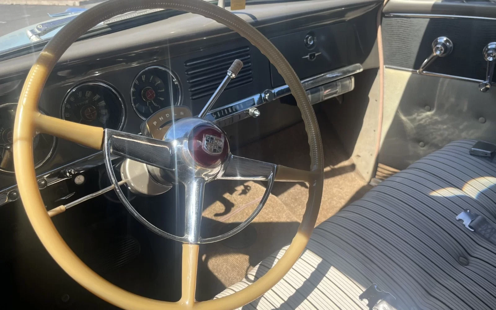 In addition to the engine work, the car has new brake shoes, universal joints, spare tire, seat belts, tail pipe, and differential gasket. As you can see from the photo above, it also has an automatic, which was a $201 extra.