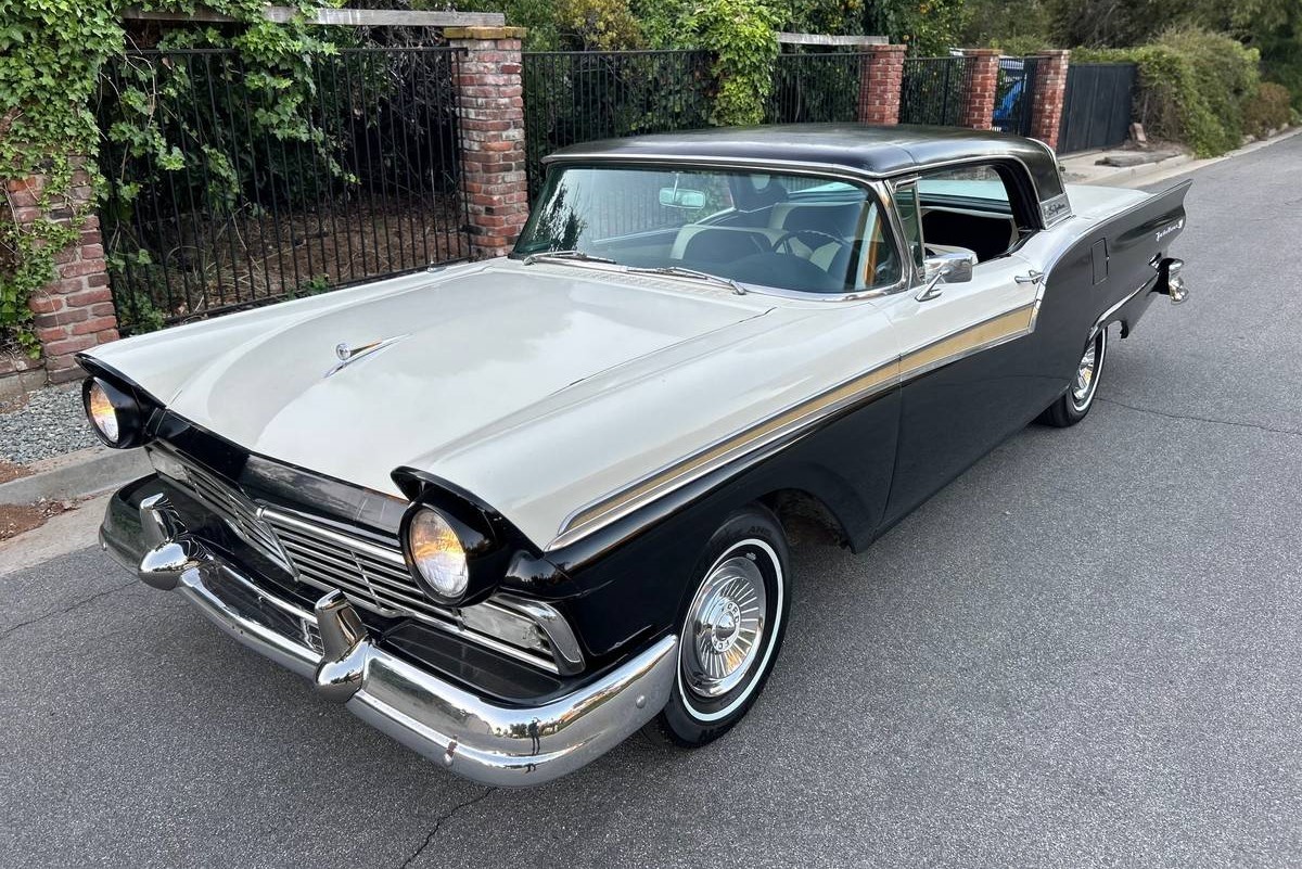 As the story goes, this 57 Skyliner is a “black plate” California car that was built in San Jose and emerged recently from long-term storage. We’re told the black/white paint is original and it looks quite good (“driver quality” per the seller). It’s managed to remain rust-free in its 67 years and 70,000 miles. It’s a well-equipped Ford with a 312 cubic inch V8 (4-barrel), automatic transmission, and power steering.