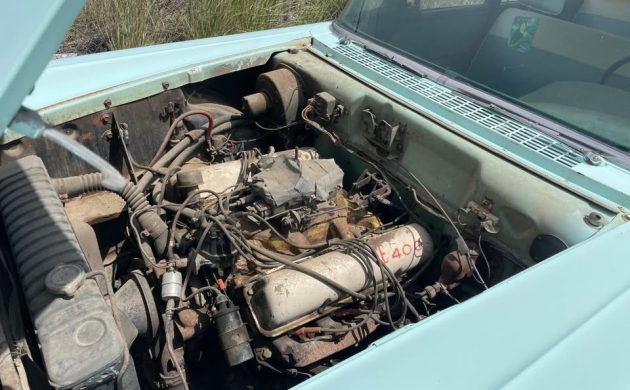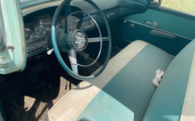 This Edsel’s interior is a surprise packet, because it looks far better than I expected. There is a split on the back seat base, but the rest of the upholstered surfaces are free from major problems. The impression conveyed is that the Green and White vinyl could look pretty nice if treated to a deep clean. Some plastic and plated items show mild deterioration, but the dash is in good order. One feature that may attract potential buyers is the “Teletouch” transmission selector located in the wheel center. More of a gimmick than a practical option, it added $231 to the Ranger’s sticker price. It was prone to reliability issues, but is considered extremely desirable in the current classic market.