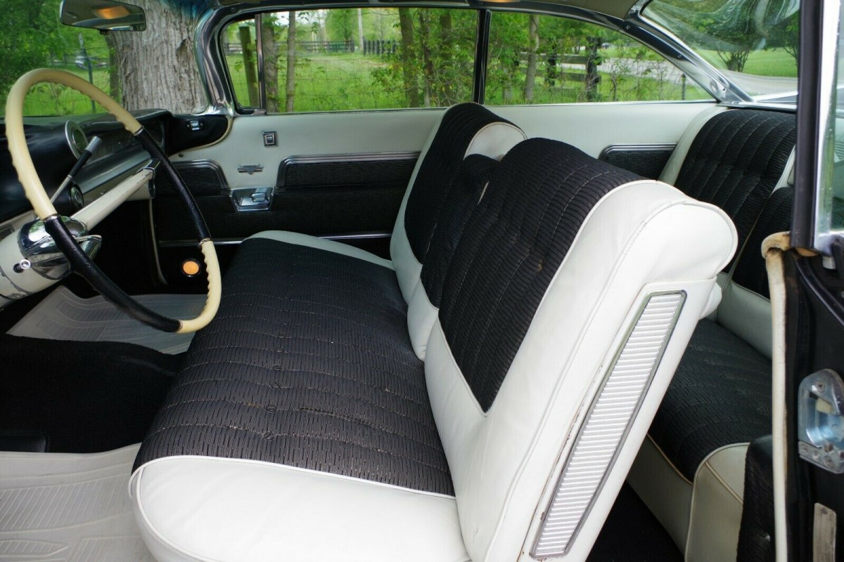 CORRECTION: The `59 Cadillac’s 390 V8 produced 325HP; not 304 as stated. Also, while the interior does look fantastic, it’s not original. At least it was redone with factory fabric and color combo. (No way white vinyl/leather stays that white in 62 years; they ALWAYS yellow a bit. Also, notice no wear on the white piping along the edge of the seats; a clear indicator of NOS re-do.)