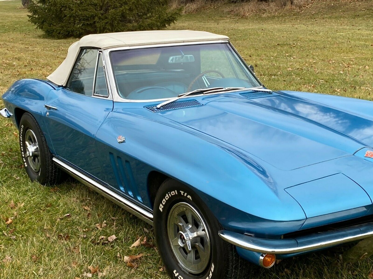 The Corvette is finished in Nassau Blue and comes with both a soft-top and a factory hardtop. The hardtop is in excellent condition, while the soft-top is very respectable for a classic of this age. The owner says that the paint is mostly original, although the Corvette has received some minor touch-ups. This work was completed to a high standard, and the owner says it is hard to pick. Metallic paint of this age is almost always going to have some imperfections, and this car is no exception. There are a few chips and some checking, but the car remains quite presentable. The fiberglass is generally in good condition, and the owner states that the vehicle is structurally sound. With chrome that shines nicely and glass that appears to be flawless, the Corvette presents as a tidy driver-grade classic.