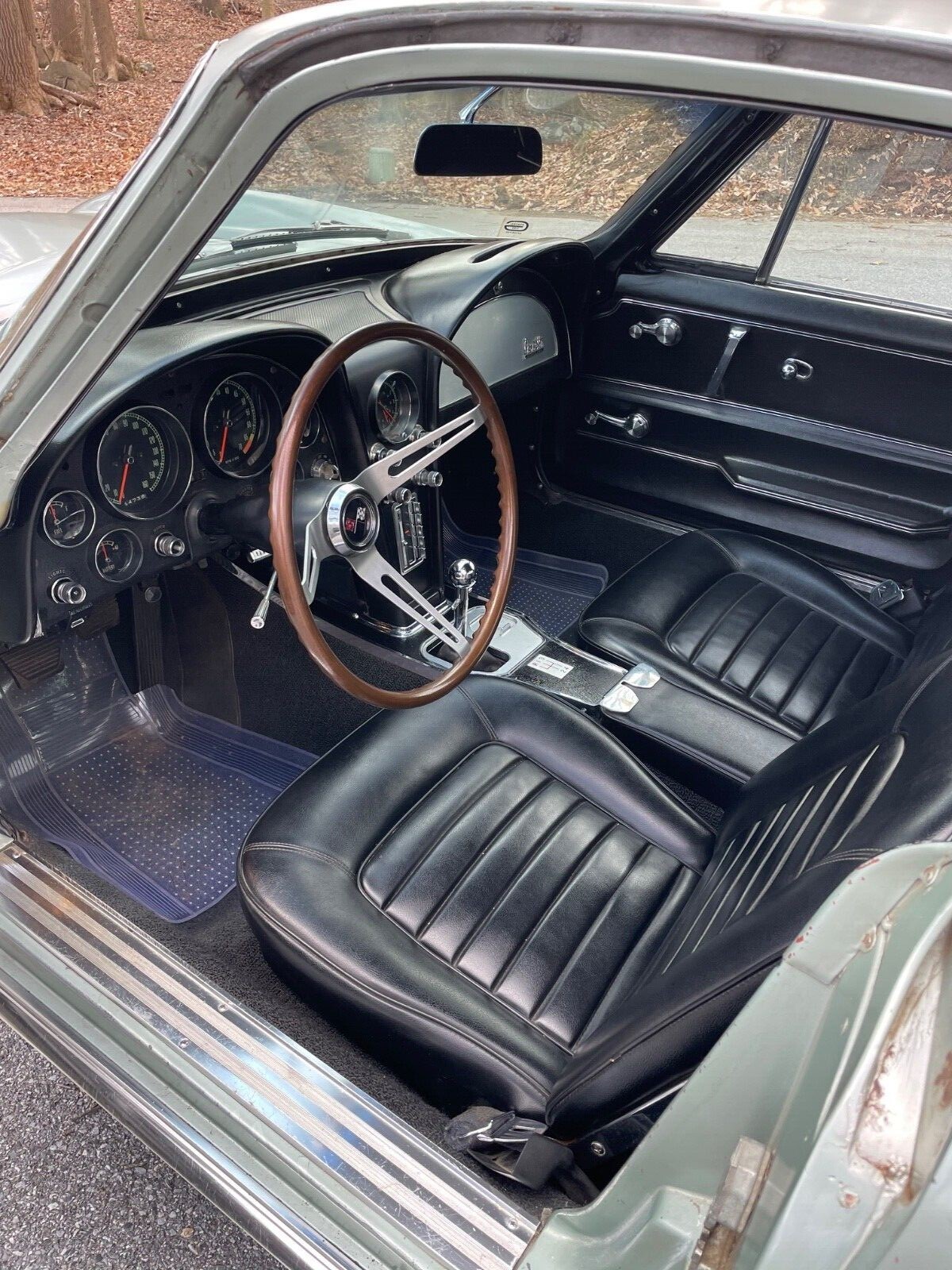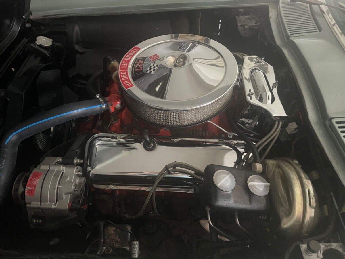 I had a 2 top ’66 Corvette convertible that was Mosport Green with a very dark Green interior that I thought was Black until the first time I folded back the top, it was a 327 300 4 speed car. This one here has a tach red line for a 425 horsepower motor but the air cleaner lid says 390 horsepower, the ad states its a 425 car ? Very nice car, wish I could afford it ,
