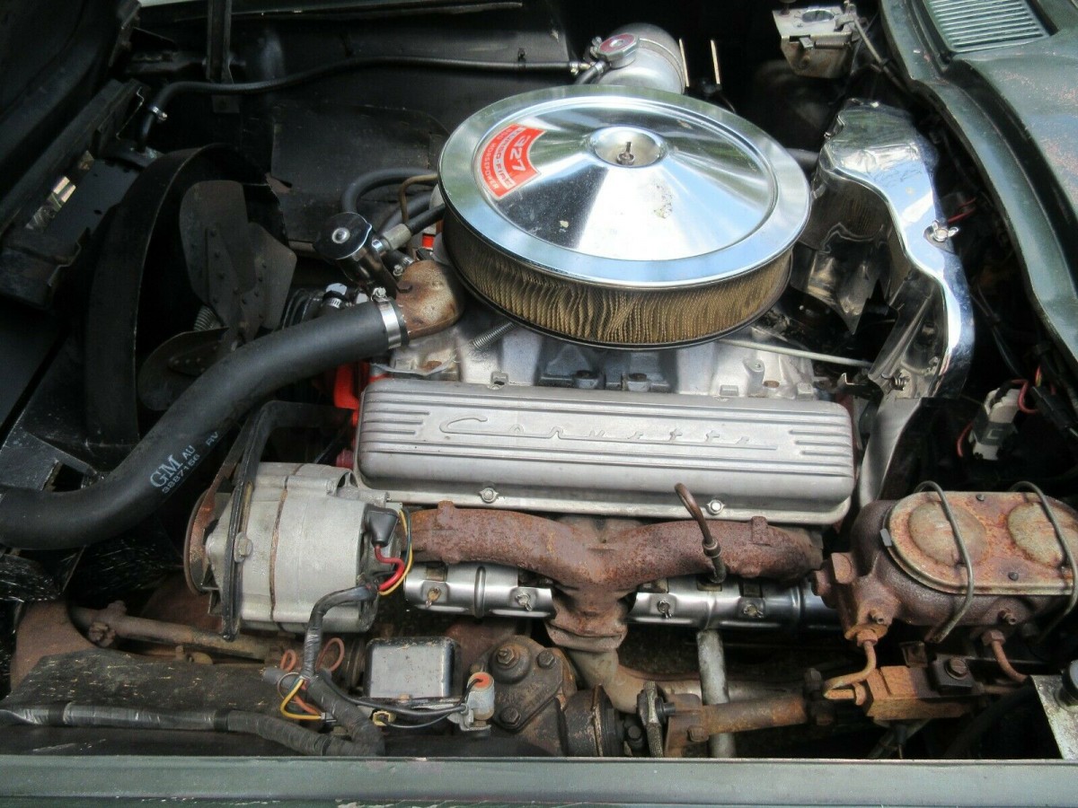 Other than than a copper replacement radiator, cut up pump to carb line, and the wrong shift boot, it looks like a very correct and original 67 Corvette.