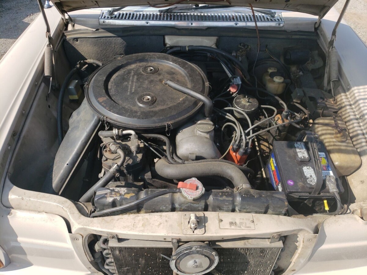 I think it’s pretty doubtful this Mercedes has under 50K on it. It’s not a 6 digit odometer so without proof let’s just assume it’s been around the block a few times. That being said these are very comfortable to drive. First Mercedes to have 4 wheel independent suspension and this chassis was also the basis for the R107 SL/SLC. Based on the condition it’s a 3-4K car not the 12K asking. Especially for the base model. Interior is tired and no doubt several thousand will need to be spent to recommission. These are heavy cars with short gearing so don’t expect more than mid teens driving. Fuel injection and a overdrive transmission would help. I think the early cars ran a 3:70 ish final drive which means over 3K at highway speeds. She’s quite busy while cruising.
