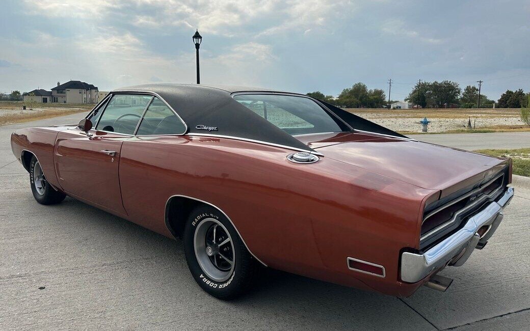 I really like that this Charger just about meets the criteria we typically look for to be deemed a survivor, and the Dark Burnt Orange Metallic paint we’re seeing here is said to be the original factory finish. The seller mentions that the car spent many of its days in California, with the only spot of corrosion on the body said to be a very small rust spot beginning to show on the passenger side lower quarter panel, but to be 50 plus years old now it still looks really good overall on the outside.
