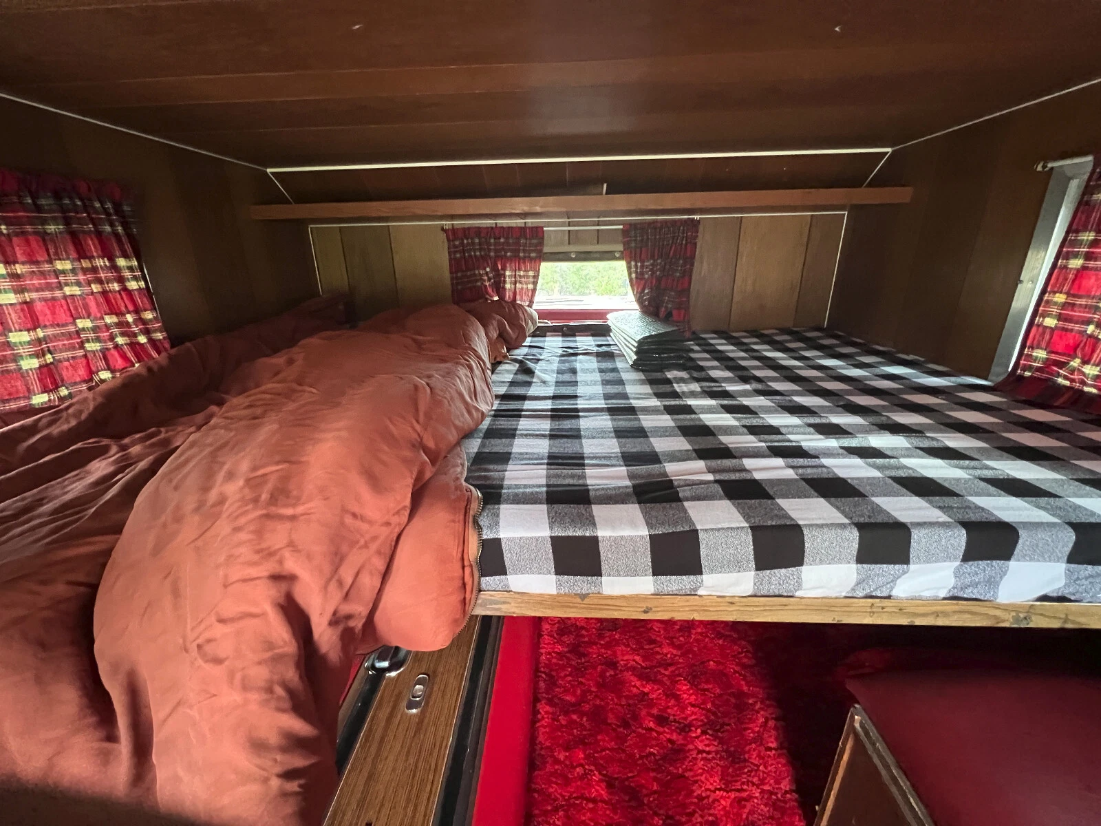 Good write-up Adam. Nice truck. I could nitpick this and that (those wheels would not have been my choice either), but overall it looks great. The engine rebuild illustrates that “nothing is cheap,” and the owner must have swallowed hard, hoping that the truck’s overall condition justified this expenditure (which the current bid has confirmed). That camper interior looks cool, in a period-correct context. Check out the truck’s headliner.