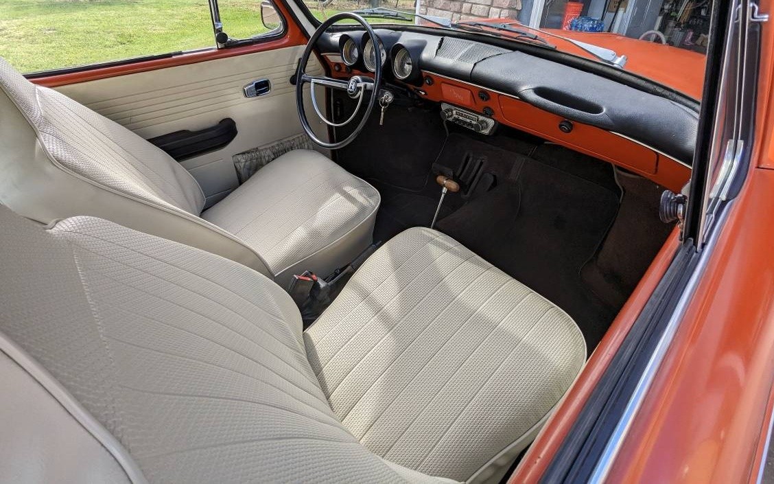 A slight increase in engine size occurred one year earlier, as in 1969 the displacement grew from 1500 to 1600 cm, still not exactly potent but the seller says the base motor has been upgraded with a set of dual Weber carbs for a little extra pep. While I’d personally prefer a stick shift, this one’s equipped with an automatic, though the seller does say his VW is super fun to drive.