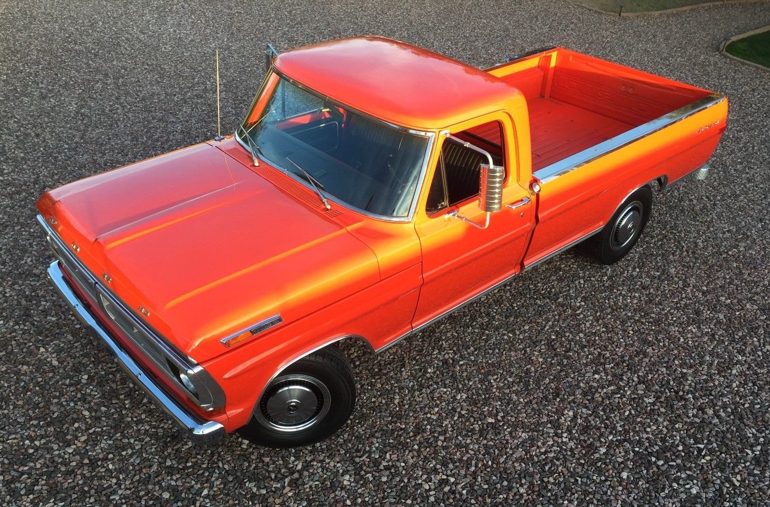 I love the truck, I personally have owned a 72 F250 that being said I have posted this scenario before having 38 years in the paint and body industry in 1972 this truck would’ve been sprayed in lacquer, lacquer paint does not utilize a hardener or catalyst it’s simply has a thinner so if it was vacuum packed in a time capsule the paint would still shrink after 45 years, I am sorry there is no possible way that this is the original paint unless the pictures are not close enough to show the cracking and checking that lacquer will do because it is lacquer The only alternative is if ford used enamel in 72 and I promise you enamel does not have the DOI or gloss that this one shows in the pictures also the shifter boot is not original and The clutch and brake pedal pads are installed upside down the only thing to me that looks original is the shifter knob and the handle of the shifter which shows timely corrosion which vehicle of 45 Years would have